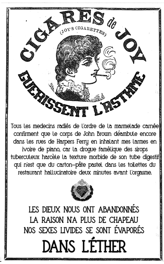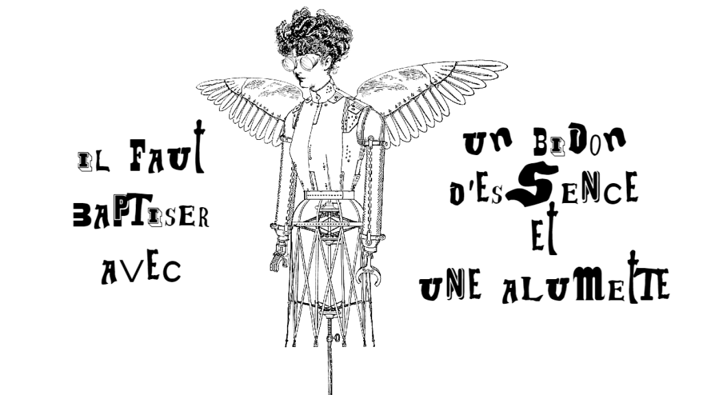 Prenez un fromage blanc d’une rénitence cartésienne et enveloppez-le dans le cahier livres du Devoir. Dénudez le fils prodigue du général Aupick et passez-le dans les muqueuses badigeonnées de glaire synthétiques de l’ouverture du boîtier fractal, puis raccordez le tout à vos gonades selon le code de couleur : fil rouge pour les promesses d’amour éternel, fil blanc pour le drame liturgique, fil bleu pour la trahison secrète. Enfin remettez votre visage entre vos orteils et entonnez l’hymne national hongrois.