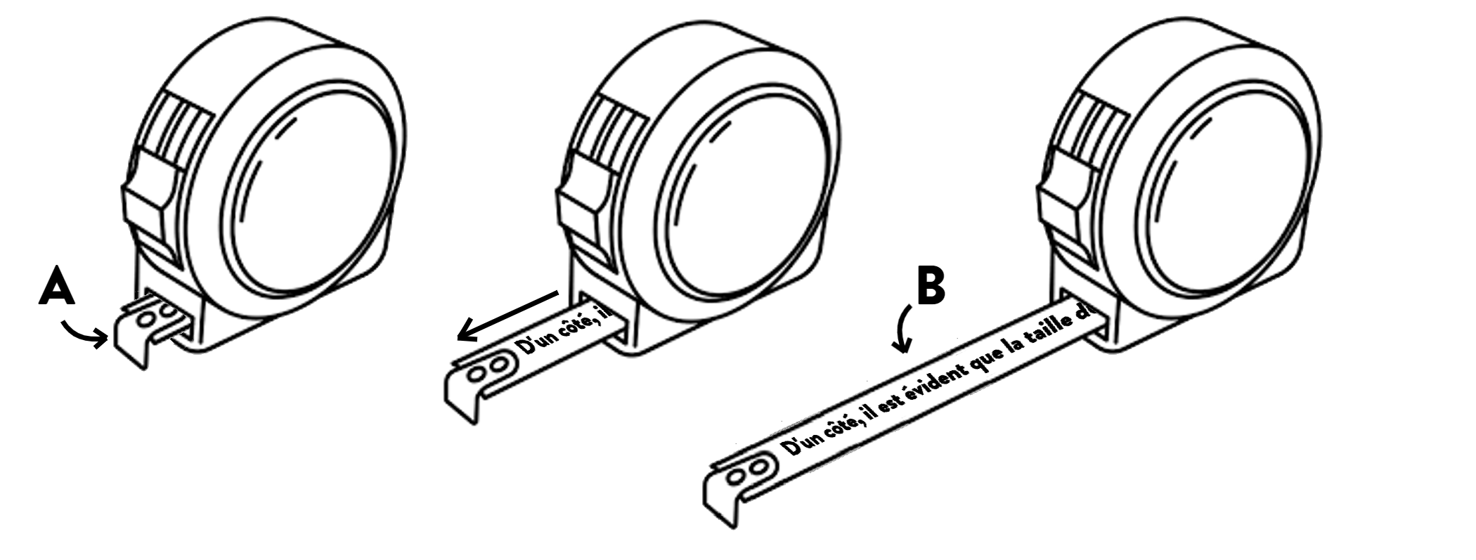 - Les enfants de moins de dix ans doivent utiliser La mesure de l’outil© sous la surveillance d’un adulte. Ne vous inquiétez pas s’iels lisent ce qui est écrit sur le ruban, c’est pour elleux un ennui mortel et le pire qui puisse arriver est que vous les découragiez à vie des joies de la lecture.