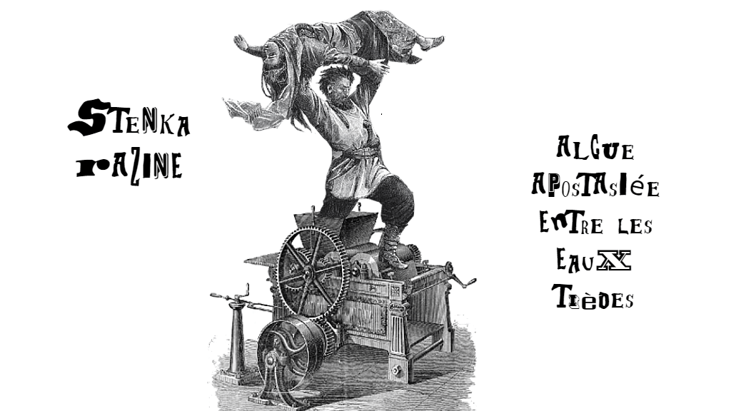 Dans mon lit ce matin dormait près de moi Stenka Razine. Sa barque était sombre et brutale ; il m’a jetée par dessus bord pour prouver à ses cosaques que son âme restait grande et loyale. Ma fente de cuir suintait l’eau de rose comme une icône miraculée mais il n’y avait personne à abreuver sur les rives du Don. Je flottais, algue apostasiée entre les eaux tièdes et obscures des pensées communes. Des cheveux et des sexes frôlant ma joue, me forçant à avaler, désemparée, ce liquide épais et astringent. Heureusement, je fus sauvée par cette femme nue à la peau bleue, portant les stigmates sur sa langue, ses pieds, son flanc et ses innombrables mains. Elle n’a toujours pas quitté mes bras, ses cris creusent sur mes tempes des sillons qui se rejoignent pour former un alphabet impur.
